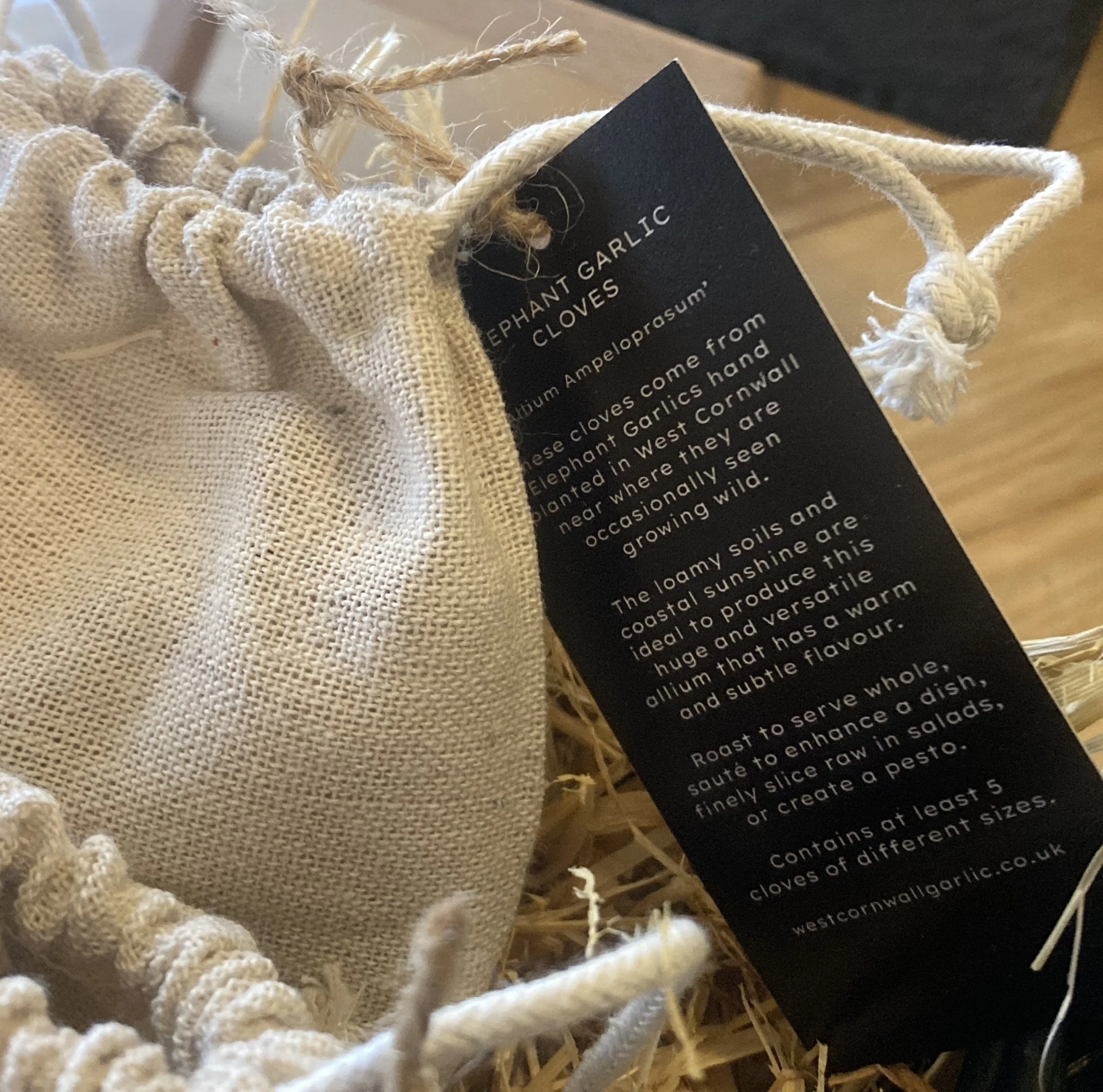 Free Royal Mail (2-3 working days) Tracked Delivery on orders of £35 or more Elephant Garlic bulbs £7.50 Sold out Gift Bag of Elephant Garlic Cloves in a re-usable branded linen bag designed by and unique to The West Cornwall Garlic Company £9.00 Elephant Garlic Scapes £3.75 Sold out Green Garlic £3.75 Sold out GIFT CARD from £30.00